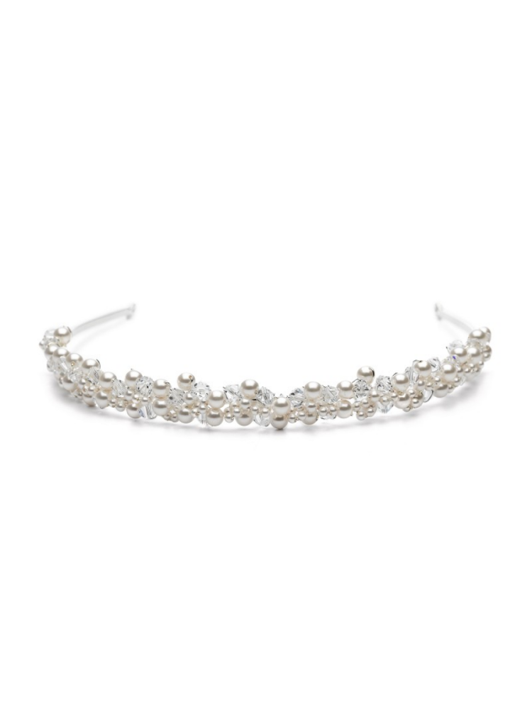 De gerhodineerde tiara is versierd met mini-kristallen en kan in veel verschillende opgestoken en ingevlochten kapsels worden gedragen.