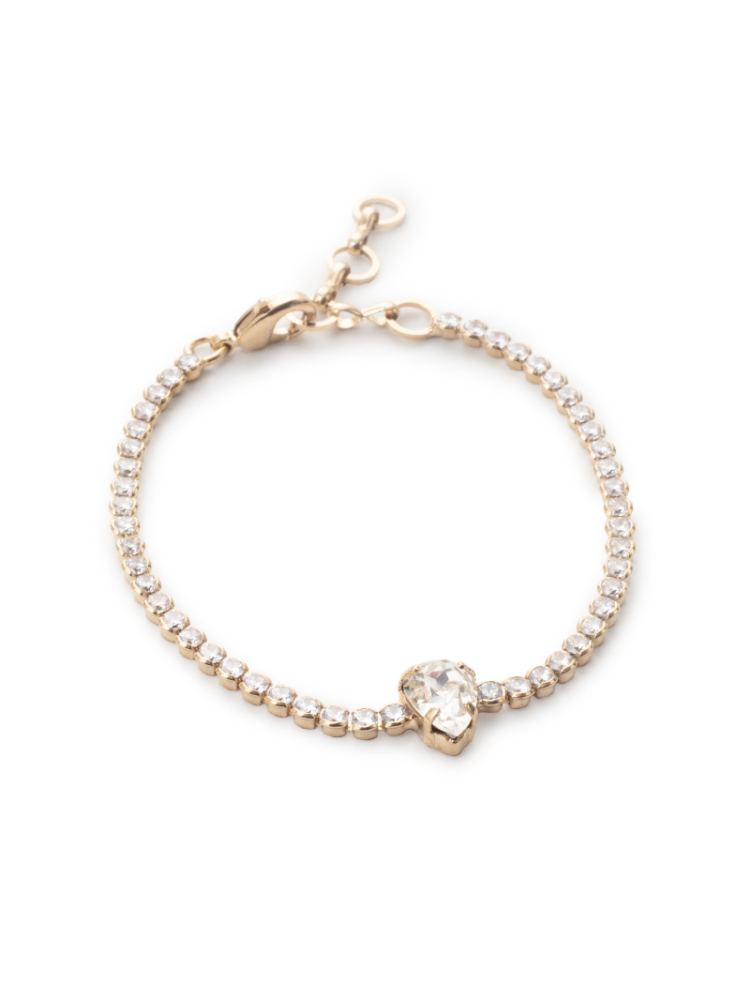 De Soraya armband is een elegant en romantisch bruidssieraad met een peervormig kristal in het midden.