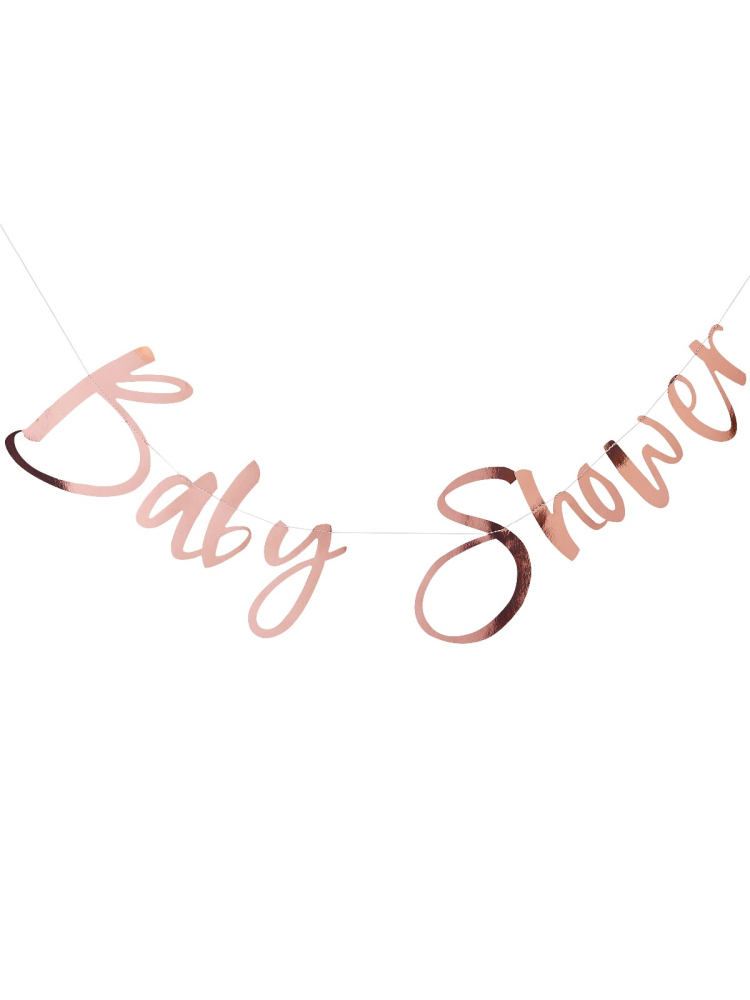 Deze roségouden slinger is onmisbaar op jullie babyshower.