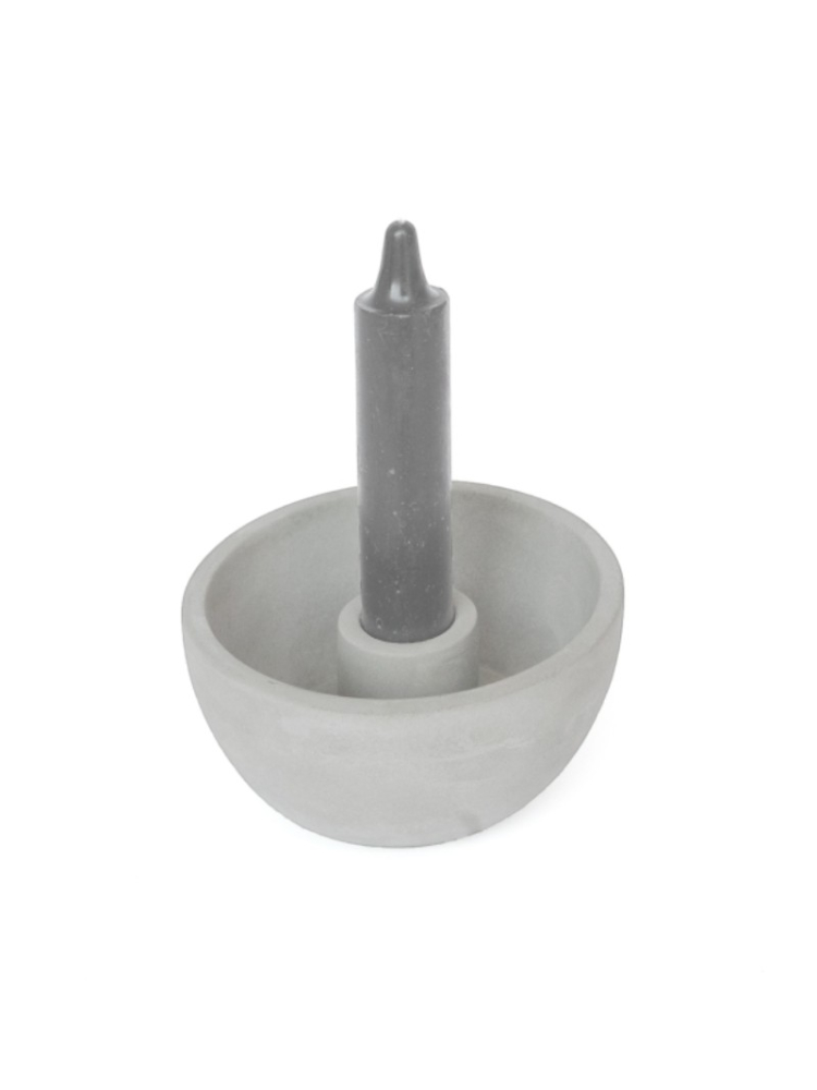 Gemaakt van warm grijs cement, houdt het een hoge kaars stevig vast met een minimalistische, komvormige silhouet; de matte textuur creëert een zachte stilte en omlijst gedeelde momenten met subtiele elegantie.
