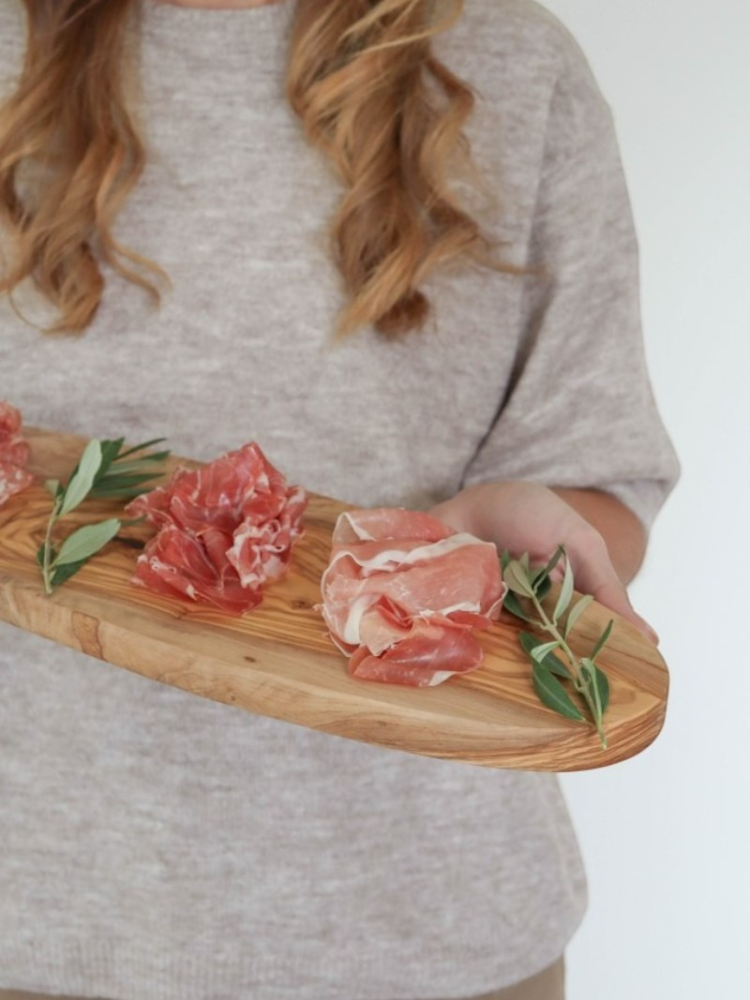 Een stijlvol gebaar voor een bijzonder moment: deze olijfhouten serveerplank van Leeff maakt samen genieten extra feestelijk, om te geven én te krijgen.