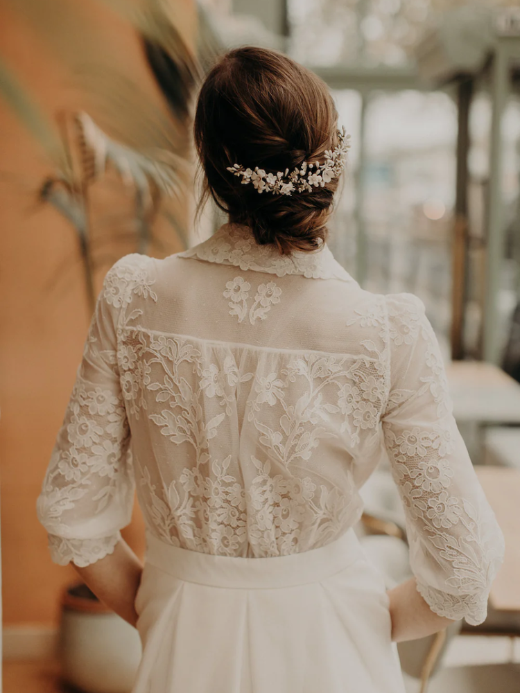 De Perrine haarkam van Lizeron is een prachtig handgemaakt accessoire dat een romantische tintje toevoegt aan elke haarstijl. Met een lengte van ongeveer 20 cm beschikt het over een royale schikking van verfijnd porseleinen elementen, allemaal zorgvuldig met de hand vervaardigd. Ontworpen om te worden vastgezet met haarspelden, sluit de Perrine kam naadloos aan bij diverse kapsels en verhoogt het uw uiterlijk met zijn ingewikkelde en elegante ontwerp. Een lichte nevel van haarspray kan de parelachtige glans van het porselein verbeteren, wat zorgt voor een glanzende afwerking; maar als u de voorkeur geeft aan de originele matte uitstraling, is het het beste om haarspray te vermijden. Geef uw kapsel een upgrade met de Perrine haarkam, een tijdloos stuk dat klassieke charme combineert met moderne elegantie.