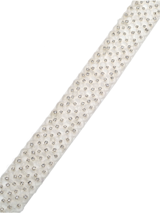 Voeg een glamoureuze toets toe aan je bruidslook met de Poirier B-75080 riem. Deze trendy riem in zacht ivoor is rijkelijk versierd met glinsterende rhinestones die het licht vangen bij elke stap. Ontworpen om zowel moderne als klassieke trouwoutfits te complementeren, accentueert hij moeiteloos de taille en creëert hij een elegante silhouette. De riem is 200 cm lang en 5 cm breed, en biedt veelzijdigheid in knopen en styling.