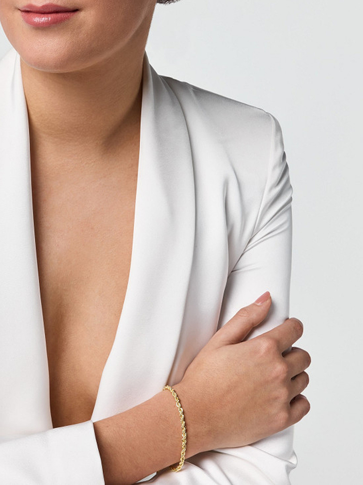 Deze elegante schakelarmband uit de Poirier Fine Jewelry Collection geeft iedere bruids- of formele look een verfijnde finishing touch. De armband is vakkundig vervaardigd en afgewerkt met rhodium-geplateerd zilver, en heeft een tijdloos gedraaid schakeldesign dat pure, ingetogen luxe uitstraalt. De verstelbare lengte van 19 cm (7.4 inches) zorgt voor een perfecte pasvorm om elke pols, terwijl de karabijnsluiting voor een veilige bevestiging zorgt. Dit stijlvolle sieraad is een prachtig cadeau of waardevol aandenken. Ideaal voor bruiden, bruidsmeisjes of elegante avondkleding — deze zilveren armband combineert minimalisme met tijdloze glamour.