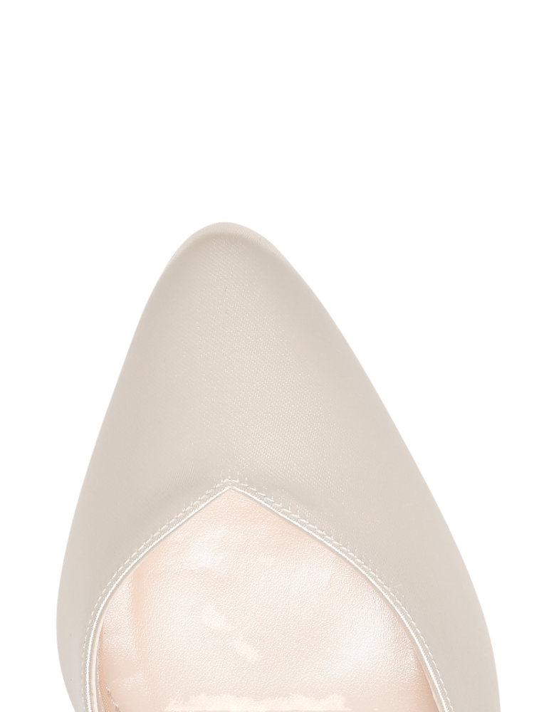 De Rainbow Club Eve bruidsschoenen zijn er voor bruiden die houden van een strakke, moderne look met elegante hoogte. Gemaakt van luxe ivoor satijn, met een slanke puntneus, een sierlijk enkelbandje en een stabiele blokhak van 8,5 cm voor zelfverzekerde steun.